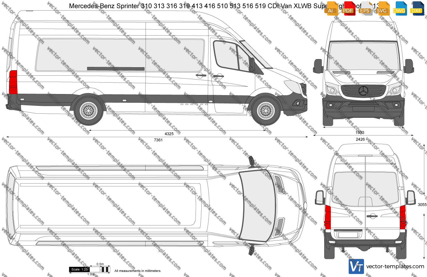 Mercedes-Benz Sprinter 310 313 316 319 413 416 510 513 516 519 CDI Van XLWB Super High Roof |